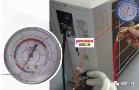 严禁凭经验确定关闭大阀门时间,拆室外机或移机回收冷媒,回收时间受整机运行频率、运行风速、气候等影响较大,凭经验很难判断冷媒恰好全部回收完毕的时间点,当系统负压后,如此时低压侧有泄漏,将吸入空气,存在较大安全隐患。